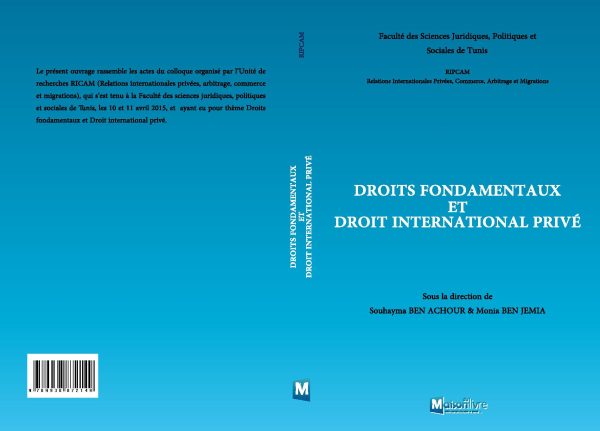 Le présent ouvrage rassemble les actes du colloque organisé par l'Unité de recherches RICAM(Relations internationales privées, arbitrages, commerce et migrations) qui s'est tenu à la faculté des sciences juridiques, politiques et sociales de Tunis, les 10 et 11 avril 2015, et ayant eu pour thème droits fondamentaux et droit international privé.