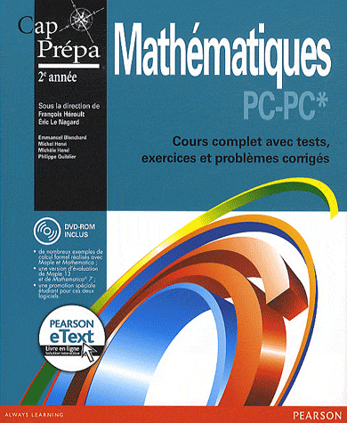 Des questions tests sont posées au fil du texte pour valider les acquis. De nombreux exercices (intégralement corrigés dans l’ouvrage) et des problèmes, souvent extraits de sujets de concours, pour appliquer les méthodes présentées. L’essentiel du cours est résumé sous la forme d’un formulaire à la fin de chaque chapitre pour s’y référer juste avant un devoir ou réactiver ses connaissances. Les principales commandes des logiciels Maple et Mathematica, dont la maîtrise est nécessaire en classe préparatoire, sont détaillées de façon logique au fil de l’ouvrage.