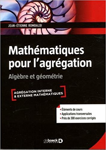 La préparation des candidats aux concours de l'agrégation interne et externe de mathématiques nécessite des outils et des méthodes spécifiques qu'il leur est souvent bien difficile de se procurer, faute d'une littérature adaptée aux exigences de la situation. Ce cours d'algèbre et de géométrie est taillé sur mesure pour ces candidats. Les notions indispensables y sont abordées dans le détail et leur assimilation est facilitée par un grand nombre d'exercices corrigés dont beaucoup peuvent être utilisés par les candidats pour leurs leçons à l'épreuve orale.