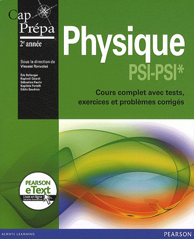 Ce manuel couvre l'ensemble du programme de la deuxième année PSI-PSI* : électronique, mécanique des fluides, thermodynamique, électromagnétisme, physique des